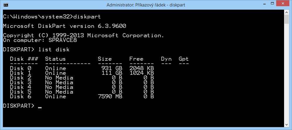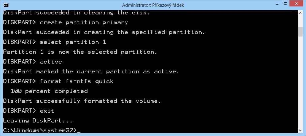 Tím úloha DISKPART končí, opustíme jej příkazem