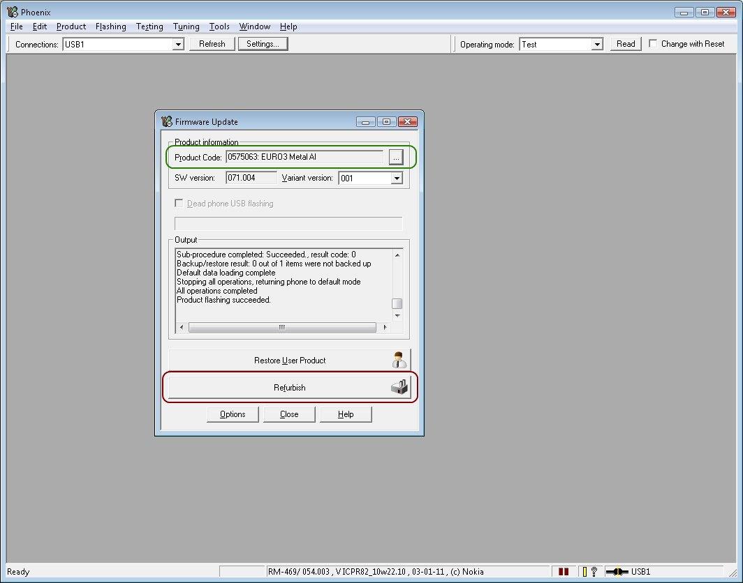 e52_flash_3.jpg Pak už zbývá jen stisknout tlačítko Refurbish, čímž dojde k přehrátí firmware do telefonu. Pozor: Před provedením update si určitě zazálohujte data pomocí PC Suite. Mě osobně se po nahrání nové verze rozhodilo nastavení a až po jeho obnově ze zálohy telefon fungoval opět jako dříve. U jiného telefonu bylo pryč všechno — kontakty, zprávy i nastavení. Takže opravdu nejdříve zálohovat! Následující obrázek zachycuje už konec procesu, tedy úspěšný firmware update. Samotný flash u mě netrval déle než 5 minut.