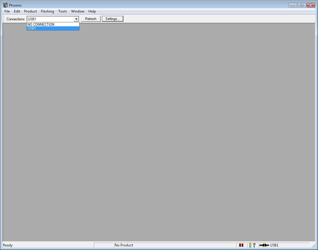 Pozor: Před provedením update si zazálohujte data pomocí PC Suite!!! Vypneme všechny Nokiácké programy (Ovi Suite, PC Suite), připojíme telefon v režimu PC Suite a spustíme Phoenix. V poličku connections vybereme USB spojení na kterém je telefon připojen (většinou je tam pouze jedno, jak je vidět na obrázku).