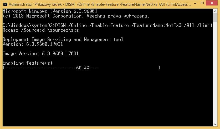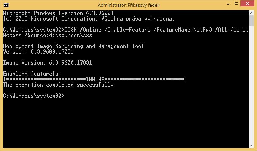 Po úspěšném dokončení příkazu máte v systému instalován .NET Framework verze 3.5!